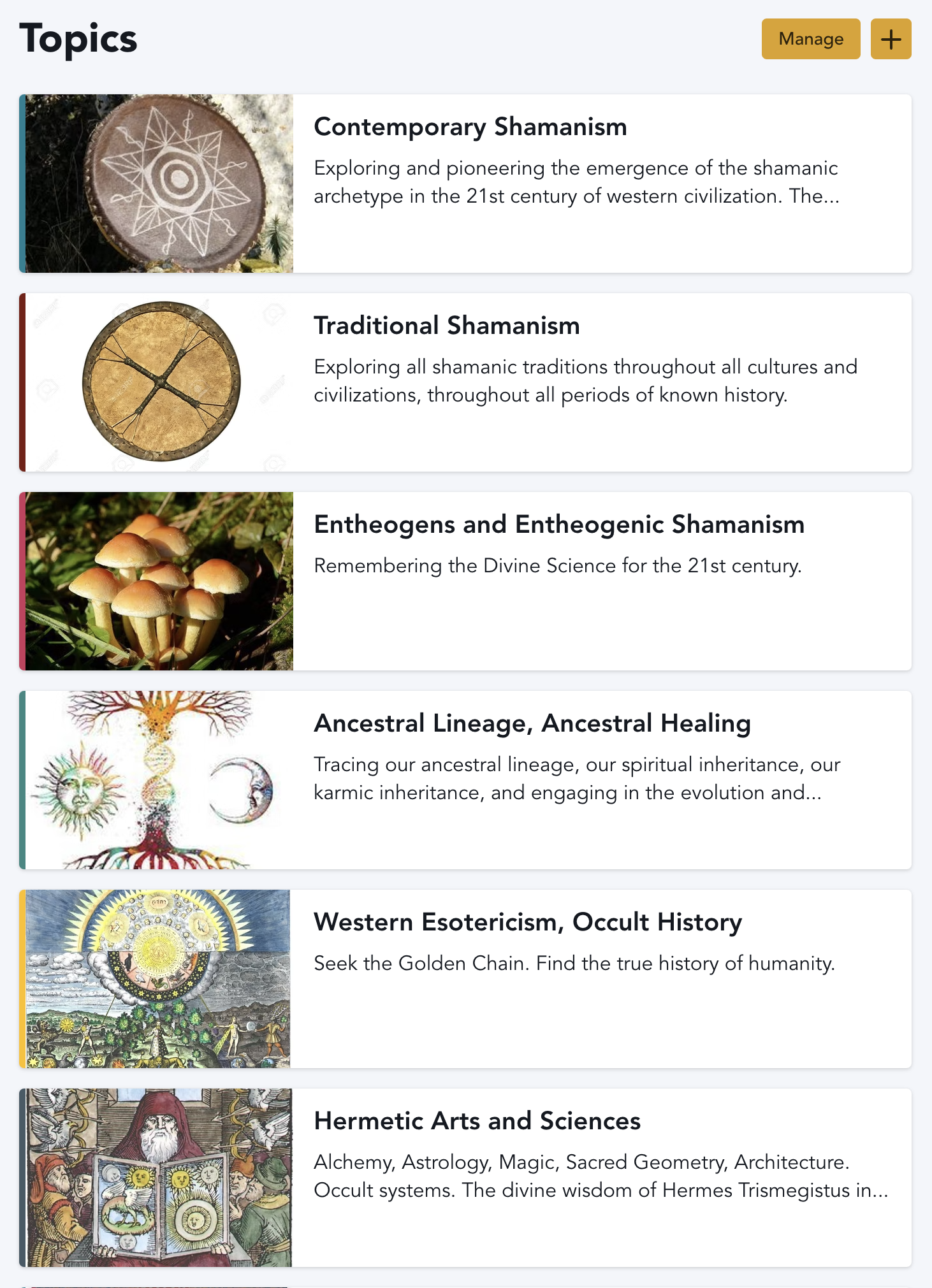who are drawn to subjects such as shamanism, initiation, mythology, visionary art, psychology, alchemy, entheogens, esotericism, occult science, occult history, sustainable community and regenerative culture building